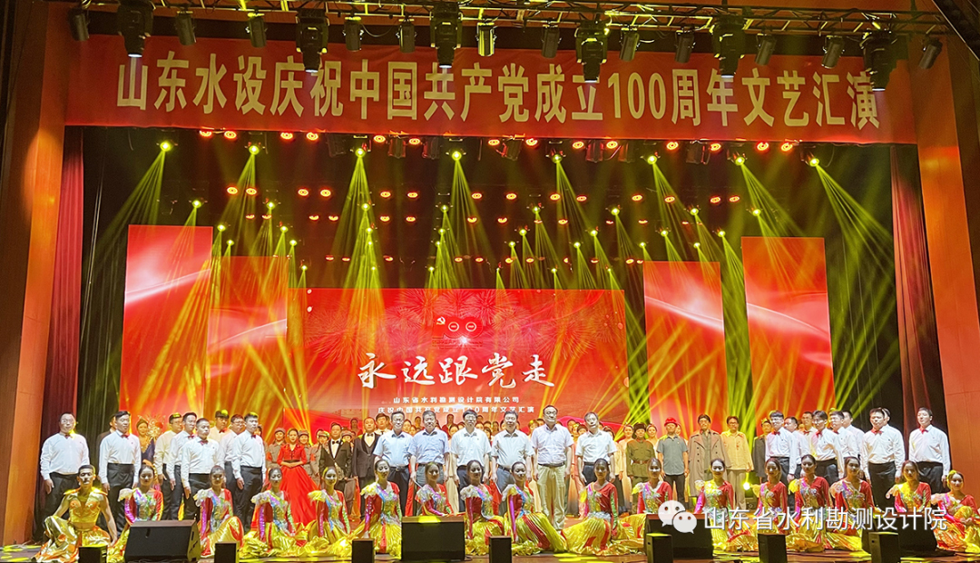 為慶祝中國(guó)共產(chǎn)黨成立100周年,6月25日下午,山東省水利勘測(cè)設(shè)計(jì)院有限公司在歷山劇院舉辦“永遠(yuǎn)跟黨走”主題文藝匯演。